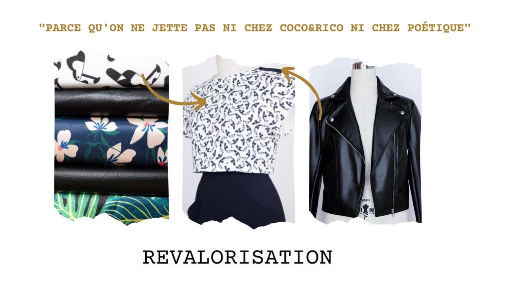 On ne jette pas ni chez Coco&Rico ni chez Poétique. Alors on garde les chutes pour faire d’autres petit produits. On avait aussi sorti le t-shirt, dont le textile était la doublure du premier perfecto et une petite bande de cuir de céréales qui nous restait comme chute.